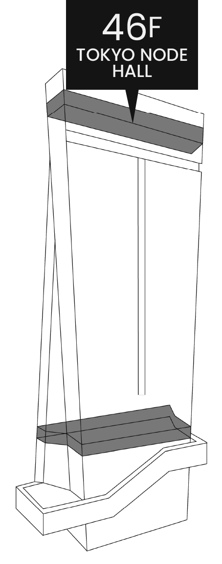 ステーションアトリウムの右手奥「OFFICE / TOKYONODE」入口からビルに入ってください。「シャトルエレベーター」で7Fスカイロビーを経由し、8F TOKYO NODE(エントランス)までお越しください。